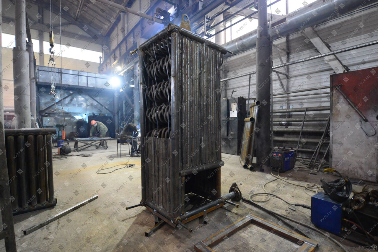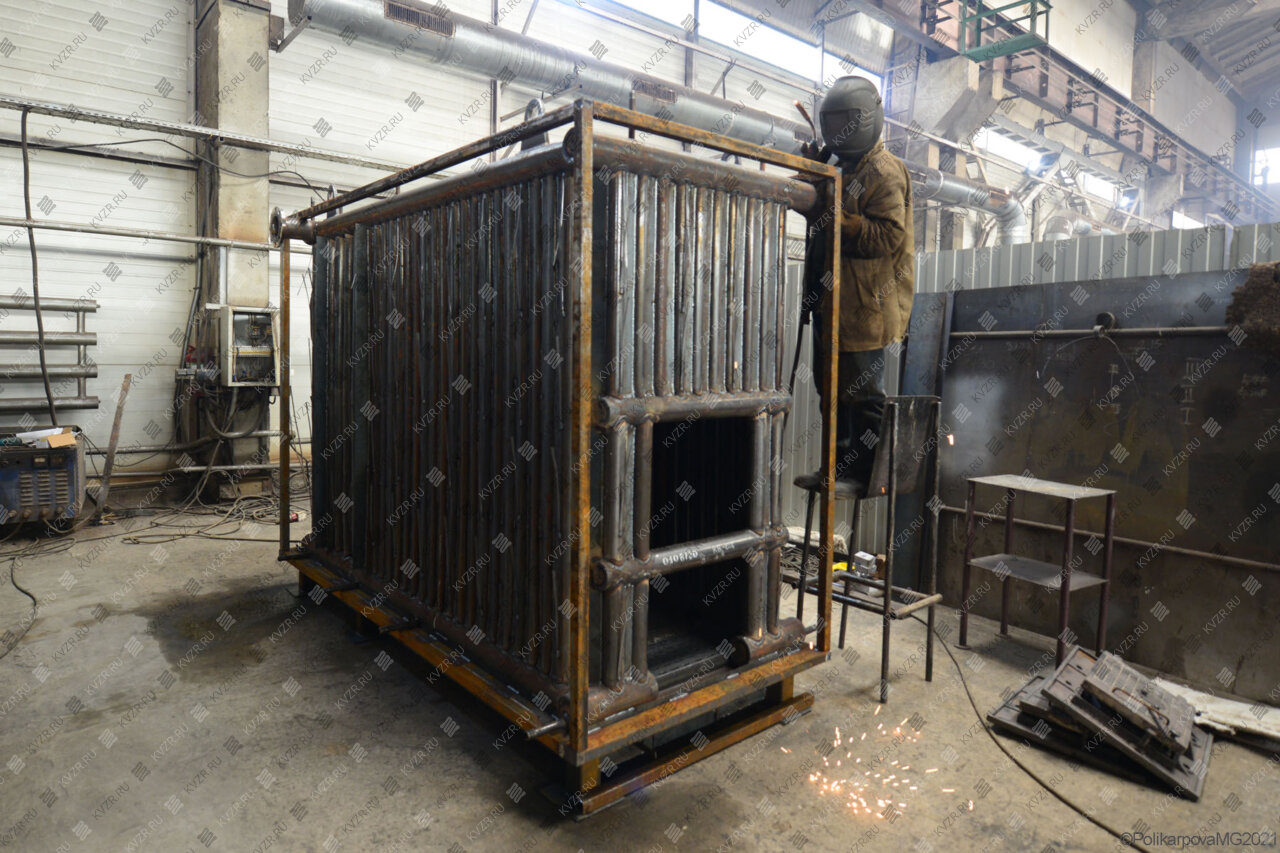Все водогрейные котлы 0 15 МВт нашего производства - стальные, горизонтальные, водотрубные, прямоточные и компактные. Трубная часть котельного блока выполняется из труб различных диаметров, материал труб сталь 10 и 20. Блок снаружи обваривается стальной охлаждаемой полосой, поэтому в наших котлах исключена возможность задымления котельного зала. Снаружи на каркас из профильной трубы и швеллера крепится утеплитель и декоративная обшивка из полимерного листа. В обшивке предусмотрены лючки для очистки поверхностей нагрева.