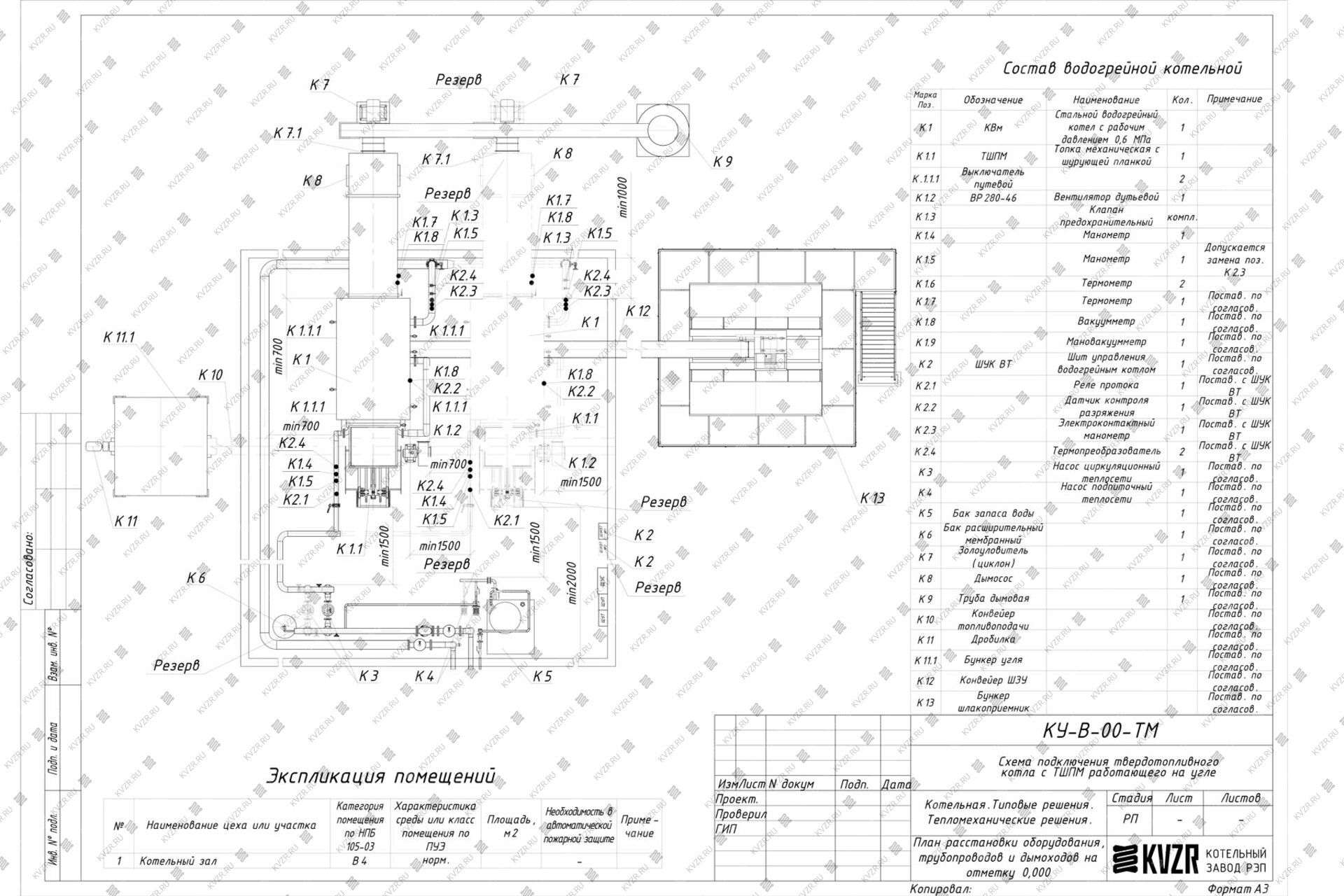 Котельный завод «РЭП» изготавливает водогрейные котлы КВм 1.6 МВт с шурующей планкой ТШПМ не только по типовым проектам, но и по техническому заданию заказчика.