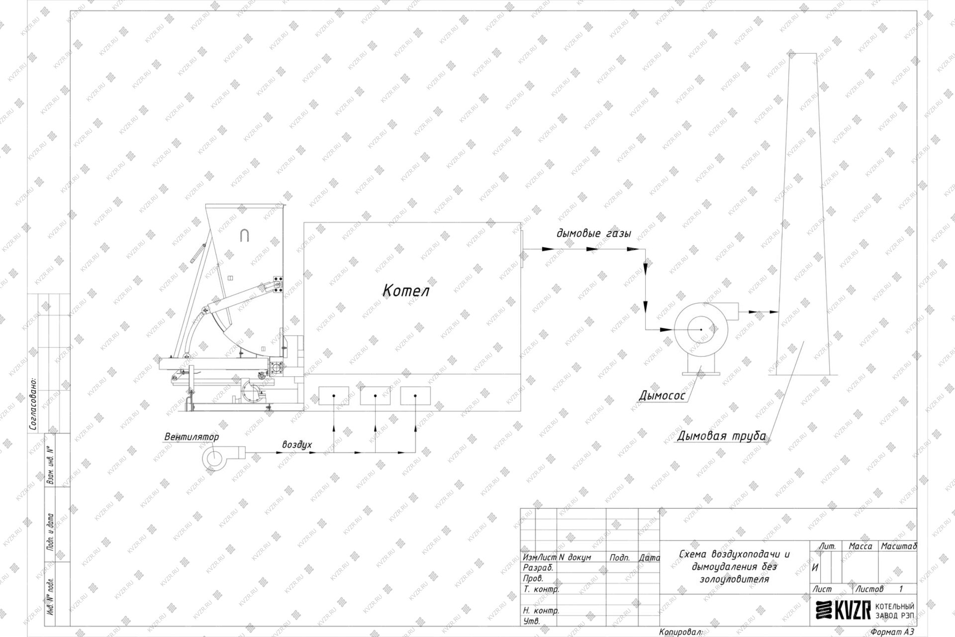 В случае, если степень очистки дымовых газов высокая не требуется, можно установить котел КВм-1.6 с ТШПМ без золоуловителя. Схема подключения при этом следующая - дымовые газы выходят из котла в газоходы котельной, затем в дымосос и далее снова по газоходам в дымовую трубу. В зависимости от компоновки котельной дымосос может устанавливаться как в котельной, так и на улице. Наш завод производит газоходы и переходники к ним. Получив схему вашей котельной мы можем изготовить для вас комплект газоходов, переходников нужных размеров и сечений. На месте такие детали собираются как конструктор. Обращаем ваше внимание, что газоходы требуют изоляции, для защиты персонала от ожогов, так как уходящие газы имеют высокую температуру, а на улице газоходы требуют изоляции для избежания образования конденсата.