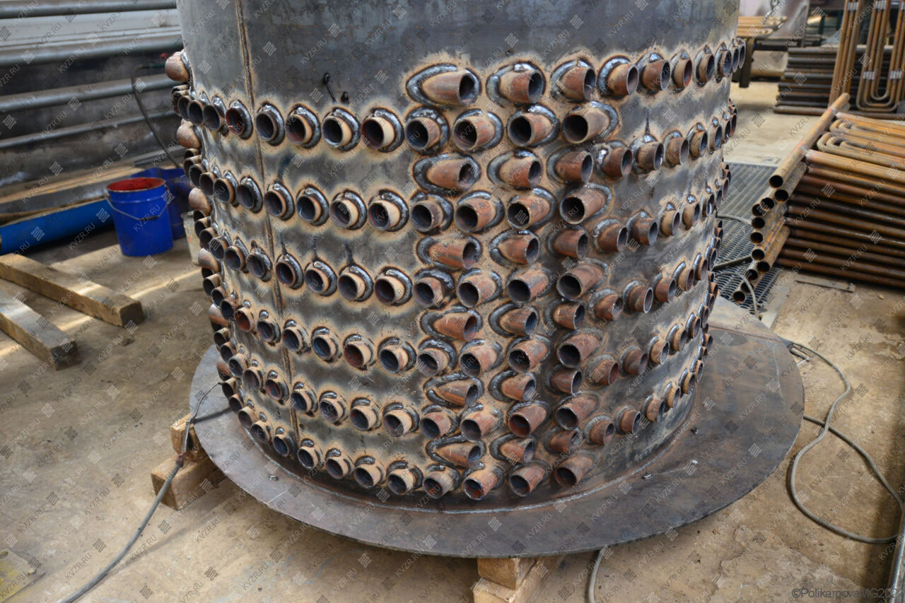 Трубная система, изготавливается в газоплотном исполнении с применением в качестве радиационной поверхности топки цельносварных экранов. Верхний и нижний барабаны, соединяются между собой пучком труб, образующих конвективную поверхность нагрева. Боковые топочные экраны, включены в циркуляционный контур котельного блока через боковые коллекторы, которые вварены в барабаны, а также потолочный экран, вваренный в верхний барабан и поперечный фронтовой коллектор, сообщающийся с нижними коллекторами.